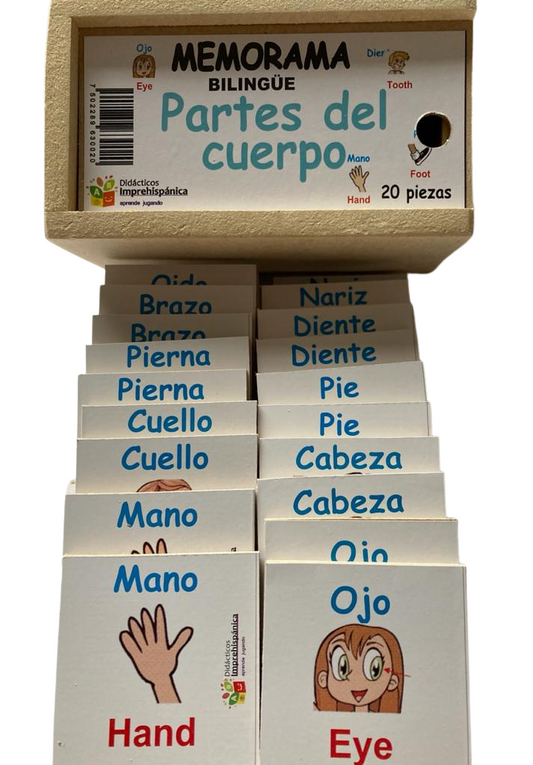 Juego De Memoria De Las partes del cuerpo Bilingüe Ingles Y Español
