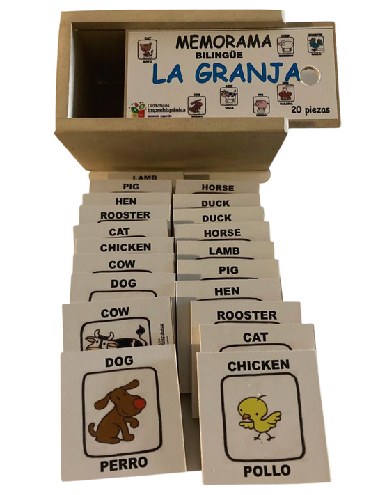 Juego De Memoria De Granja Bilingüe Ingles Y Español
